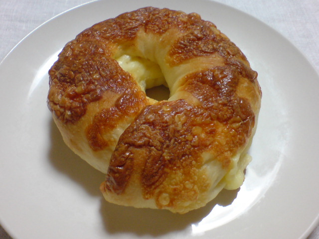 チーズのベーグル…一口目の印象は普通のパンでしたが、そこにチーズの塩気と香りが加わってパン自体の甘さが襲ってきます。ただ個人的に、中に入ったチーズが少し重く感じました。