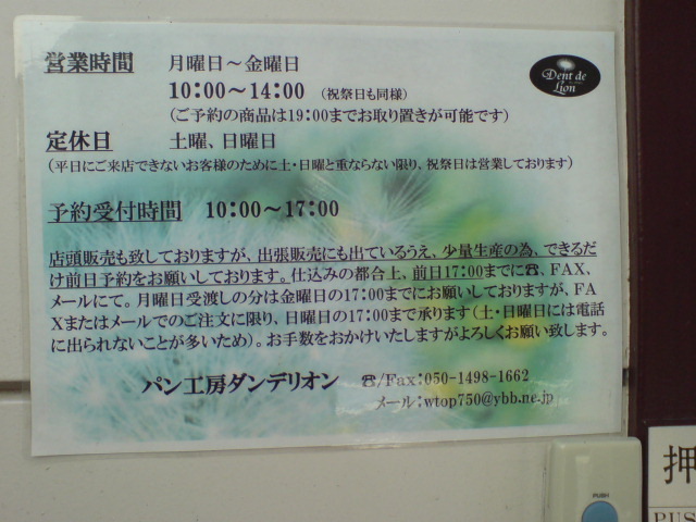西多摩郡日の出町平井のパン店、ダンデリオンである。