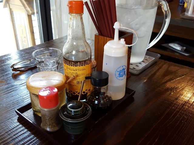店内に通される。カウンター席はいっぱいだと言う事で、テーブル席に案内された。相席であったが、4人がけに2人ハスに座った為圧迫感等は全くなかった。