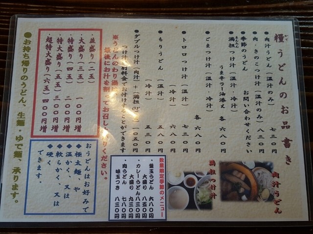 初めての店だった為、メニューの一番前に書かれていた肉うどんを並盛り(2玉)\730、麺の温かさや硬さ等は普通でお願いした。麺は追加して良いかとも思ったが、初訪問だしまぁ良いだろう。