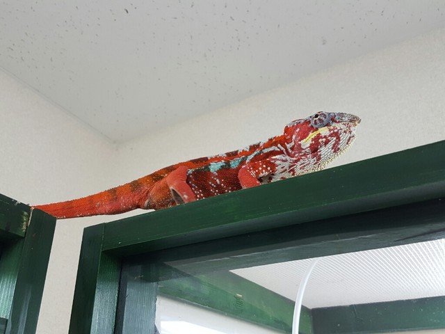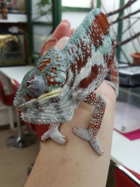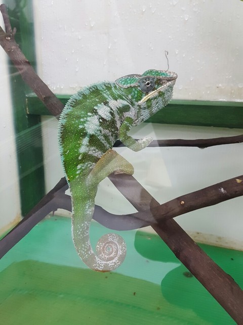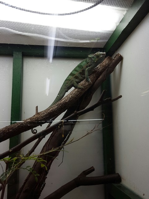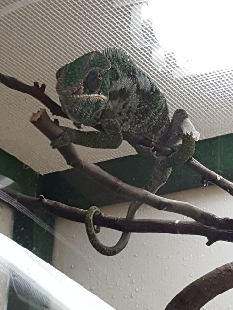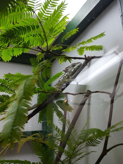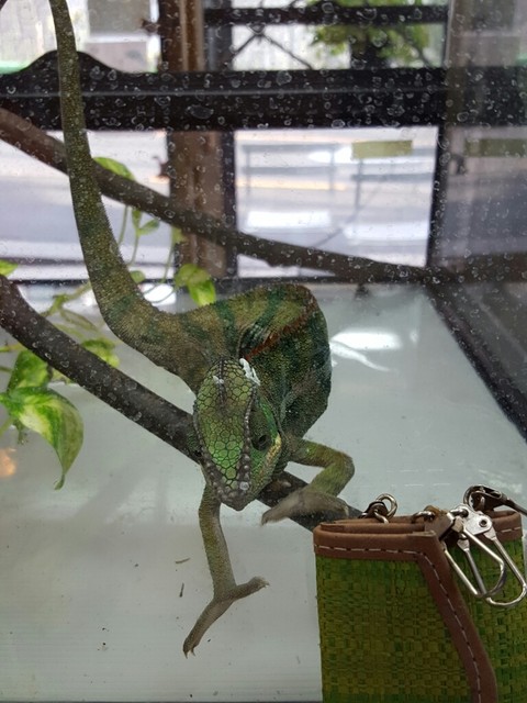 カメレオンの天敵は鳥だそうで、それゆえ上方から触られるのを嫌うそうだが、逆に下方から触られる事はあまり気にしない様である。