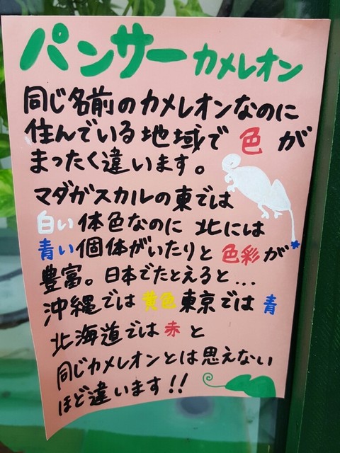こちらの店の一番の特徴は、カメレオンと触れ合える事だろう。その時には店員さんが丁寧にレクチャーしてくれるが、事前に「店内の注意事項」を読んでおくとなおスムーズだろう。