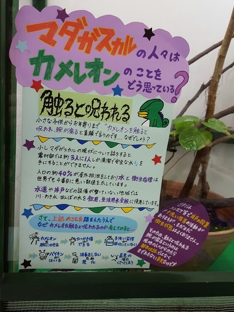 カメレオンと触れ合った以外にも、捕食を見せてもらったり、色のかわるのも見る事が出来た。