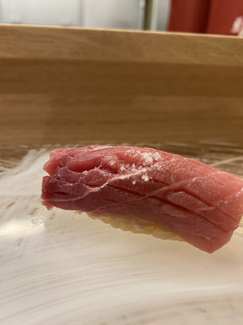 赤身は中に海苔が一枚挟んであって口中で鉄火巻きとなる