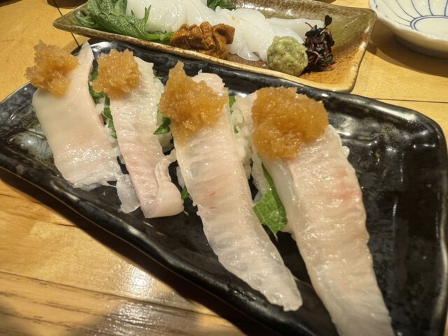 あまり写真撮れていませんが、特に美味しかったのがイカの刺身(肝付き!)とエンガワのお寿司。