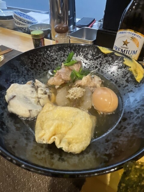 急に寒くなってきたのでおでんを食べたいということで目的地から徒歩で行けるところに。