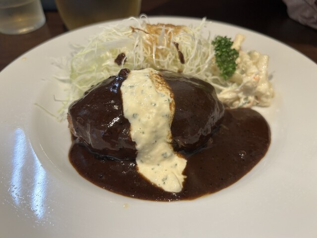 ワサビを使った白のソースは、クリーミーさもありつつ爽やかでデミグラスともハンバーグとも相性バッチリです。