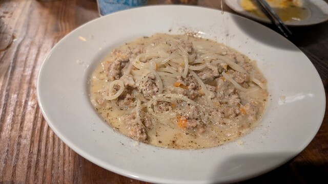 中でも肉厚なホタテにオリーブオイルとブラックペッパーが絡んで絶品でした。