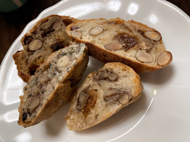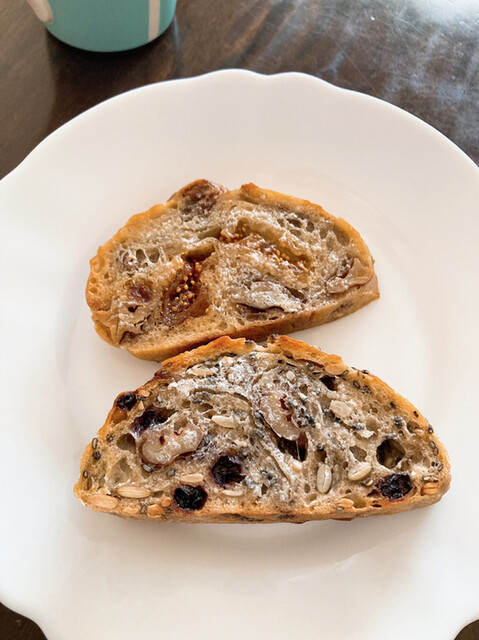 かたくないシナモンのもっちり生地に、くるみといちじく、レーズンも少し入ってて、とっても美味しい!