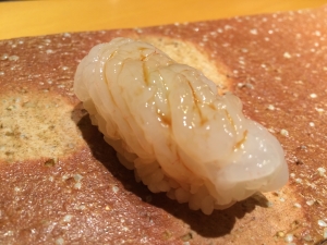 弾力のある歯ごたえですが白身のさっぱりとした甘みが感じられる握りでした。