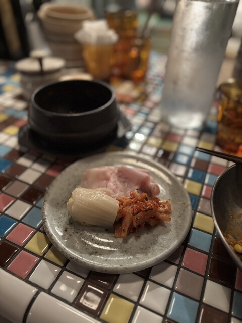 京都へ行ったら絶対こちらへ。コングクス目当てだったけど残念ながら完売。カンテンジャンピビンバと蒸し豚と塩漬け白菜を注文。キンキンのビールに最高の組み合わせ。ピビンバは辛いスープ状のタレを入れて混ぜて食べるとゴマの葉の爽やかな香りとマッチして絶妙に美味しい。美しい蒸し豚をキムチと塩漬け白菜で巻いて食べるとこれまた美味しい。
