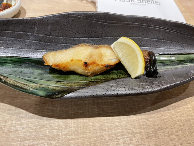 ぎんだらの塩焼き、レモンをかけて頂きます。