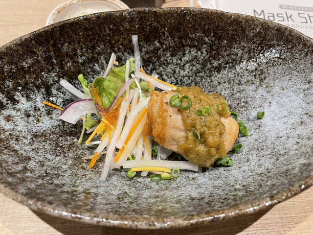 7000円コース お通し、シャケの南蛮漬けアップ