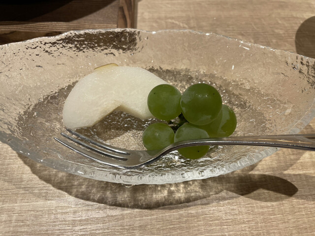 デザートは梨とブドウでサッパリと。
