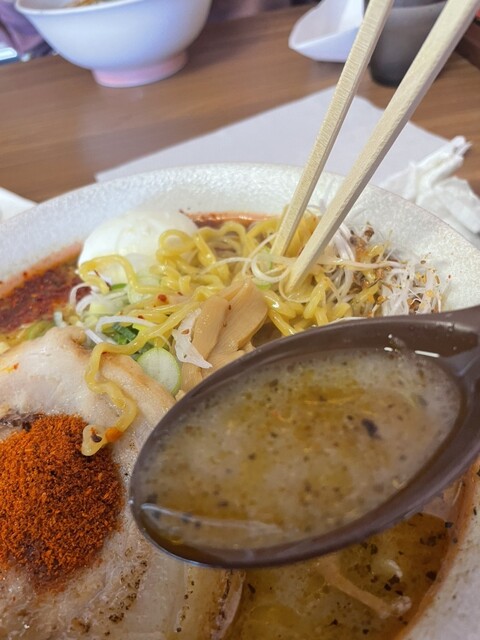 チャーシューの上にあった辛味スパイスを入れると一気に辛さが増します。