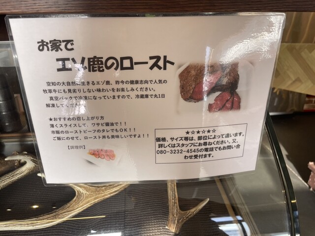 エゾ鹿のローストが売っていたので買いました。冷凍でパックで売ってます部位によって値段が違いますが、100g1000円前後ぐらいです。