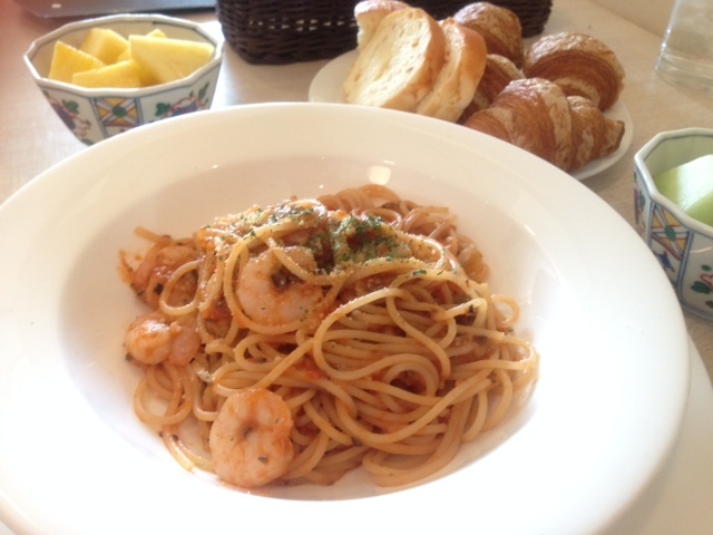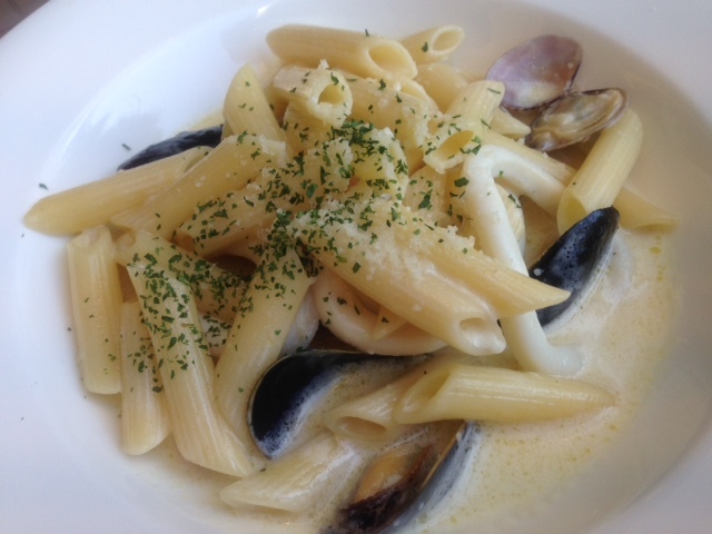 本日は1800~のパスタを頂きました。魚貝のペンネ。