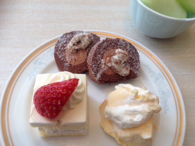 ただ、ホテルのビュッフェらしく、お皿はプラスチックではないし、ケーキも彩りキレイで美しいです。