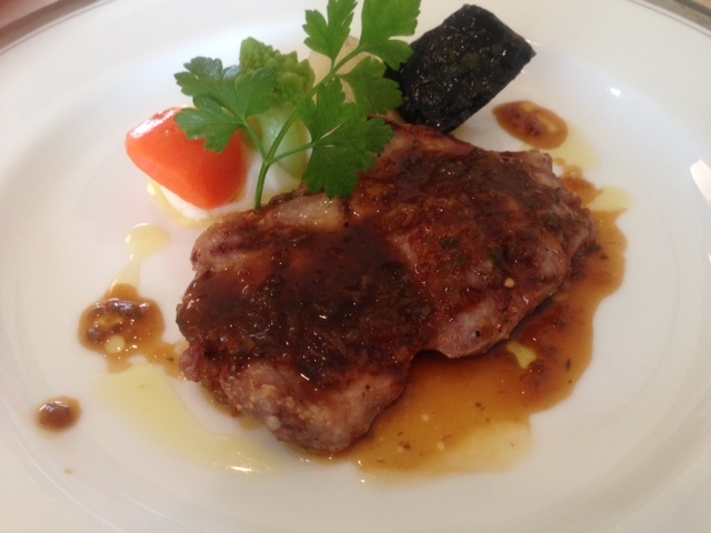 本日の肉料理は…豚肉のソテーかな?筋が多かったな~