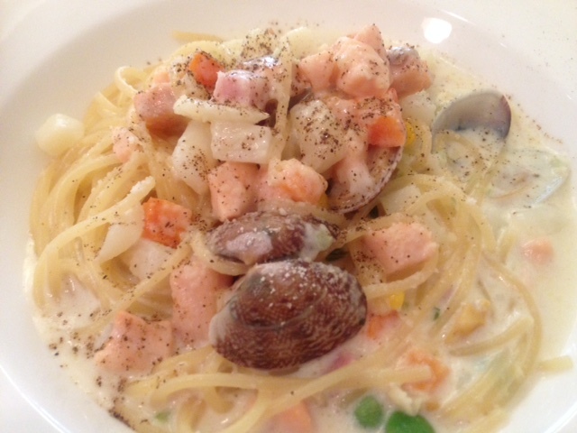 サーモン入りクラムチャウダーパスタをいただきましたー