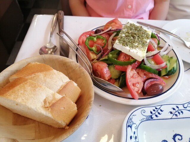 麻布十番のミリュウにてあれこれ。相方の誕生日祝いでこちらへ。ギリシャ料理のお店です。初めてなのであれこれと。有名なムサカやドルマーデスはもちろん、どれもあっさりとした味付けで美味しかったです。中でもギリシャ風サラダがチーズの塩気と野菜の旨味が合わさって絶品でした。お酒も蒸留酒のウゾは八角の香りですっきりした味わいで夏にぴったりでした。デザートまで食べて大満足でした。