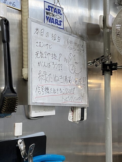 食後、若き店主さんと交わす会話の中で、「青タバスコ」の中身について聴くと、お酢、青唐辛子、ハラペーニョで作ったオリジナル。ひばりヶ丘店の店主さん(若き店主のお父さん)考案の作とのこと。