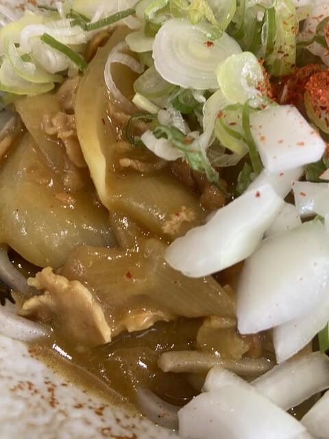 選んだ理由:単純に、肉そばのその肉が食べたい味わいたい。加えてトッピング増しは、これも単純に玉ねぎ好き故に。