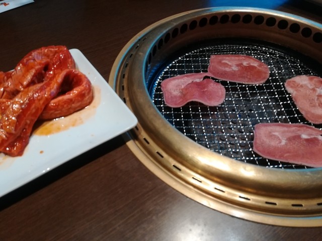 ハラミをブロックで焼くから外は焼けて中はジューシー。