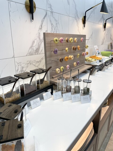 デザートにはドーナツも可愛らしく飾ってあって、スムージーもあります。
