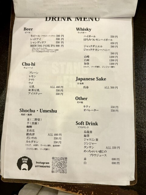 立ち飲みスタイルながら、料理歴20年のアフロ店長が手がける本格創作料理を気軽に楽しめます