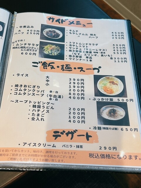 食前のコムタンスープお通しは韓国海苔かもやしのナムルでもやしナムルにします