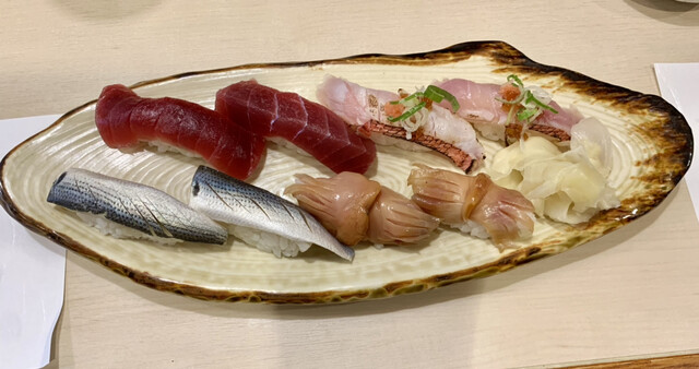 赤身、コハダ、金目の炙り、赤貝、穴子