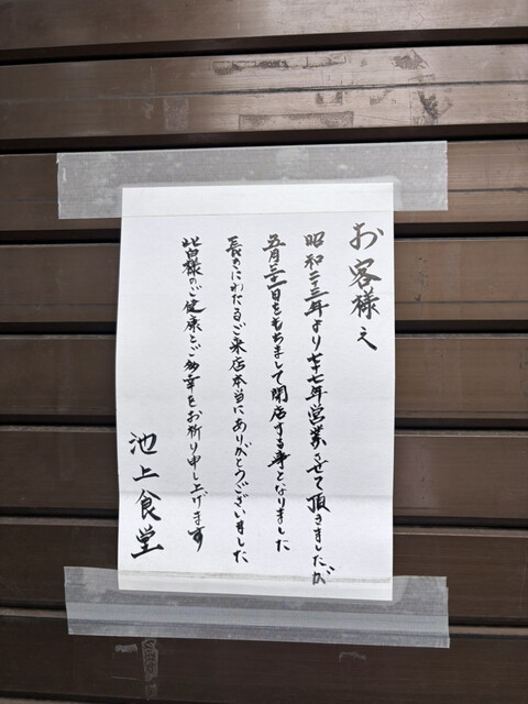 5/31閉店(T . T)池上食堂さん長い間ありがとうございました。
