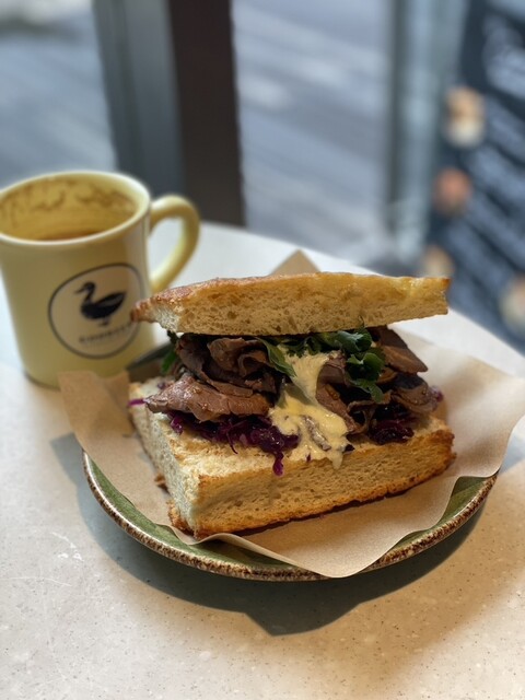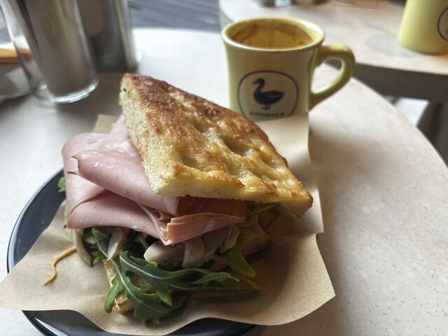 ワンコと一緒に食べるフォカッチャサンドはボリューム満点!