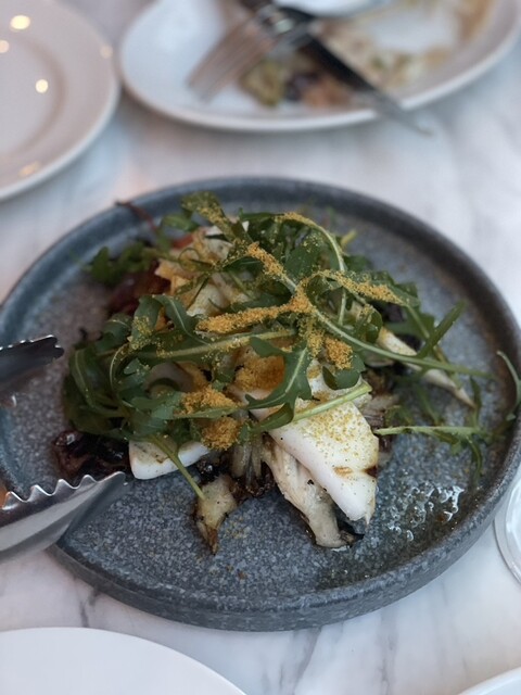 お魚は鯛のザビーチェこれにはスパイシーな白ワインをあせました。