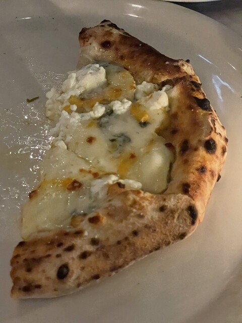 最後のクアトロフォルマッジオピッツァは少しスモーキーなチーズを使用していて、それに合わせてくれたオレンジの蜂蜜がめちゃくちゃ合ってて美味しかった〜!