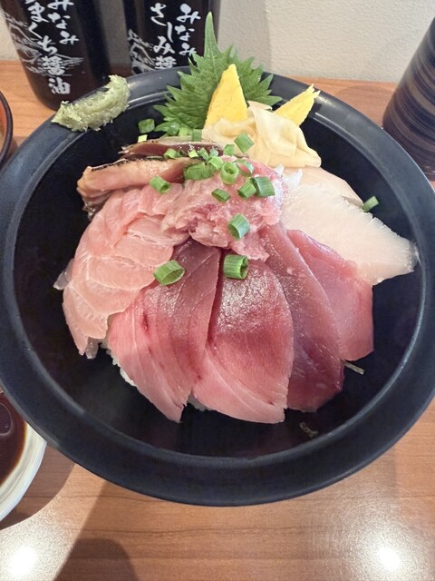 暫くして運ばれて来た丼、多くを語らずともまぐろ三昧の豪華さ。南まぐろ、メバチマグロ、ビンチョウマグロ、等々まぐろオールスターズが乗っかっています。