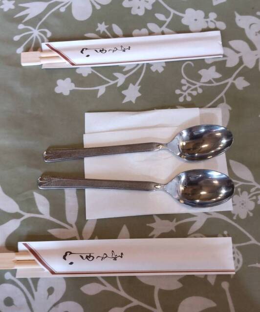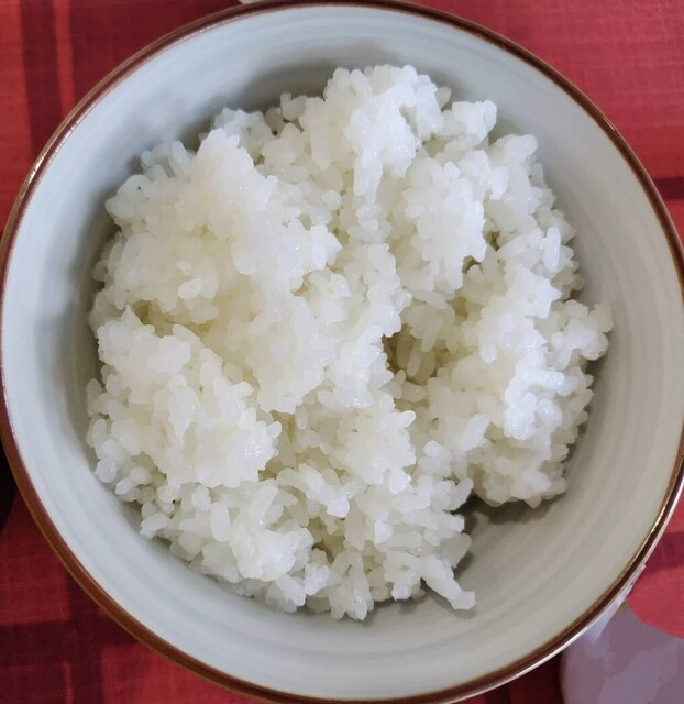 ご飯の量ですが、画像は茶碗を上から撮しているので深さがわかりませんが深めの茶碗になっていて、その器にふわっと盛り付けてあるのから見た目より多いです。