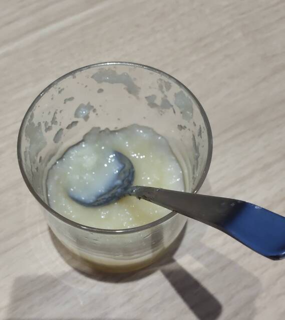 先ずかき混ぜる前のスープをひとくちもらいました。