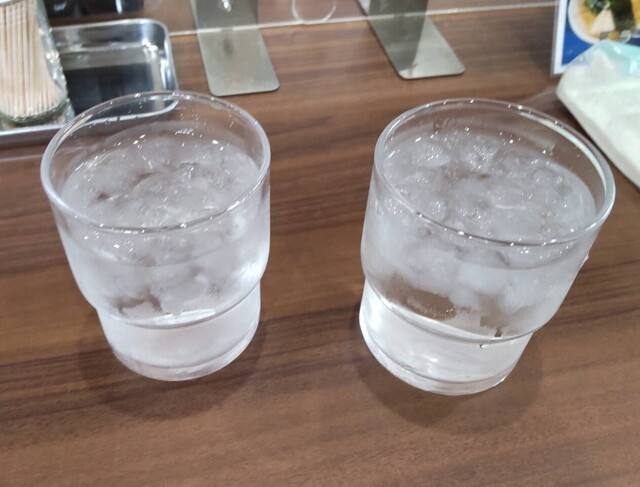 システムは入口で食券を買って席に着き、お冷やを届けてくれた店員の方に食券を渡し、待ちます。