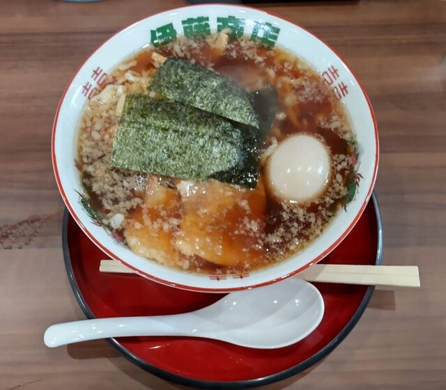 朝ラーで人気、このお店自慢の脂分を極力押さえた淡い醤油味のスープは胃に優しいあっさり味です。