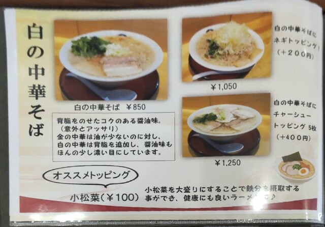 ●金の中華そば 850円