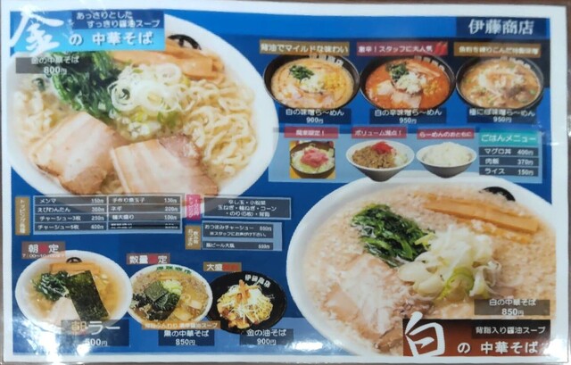 伊藤商店が7:00~10:00、11:00~15:00営業と真っ向勝負!双方とも餃子はありませんが、つむぎにはごはん物が少しありますが、伊藤商店には無く、伊藤商店は朝ラータイムワンコイン500円、全メニューご提供OKです!の営業をしています。