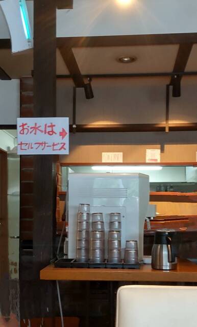 お冷やと割りスープはカウンター席傍にあってセルフサービスです。
