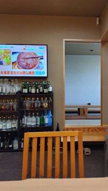 大きなテレビモニタの横の入り口は座敷席。