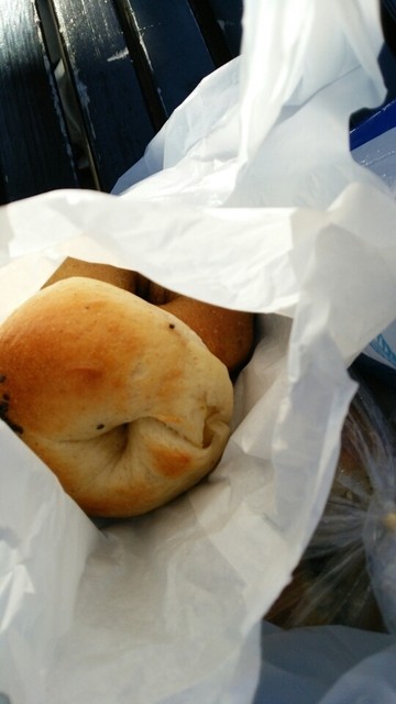 お店は石川町駅を関内方面の出口から出れば近い。すごく小さい所で、中ではパンを焼いていて店頭でベーグルなど売っているのだ。