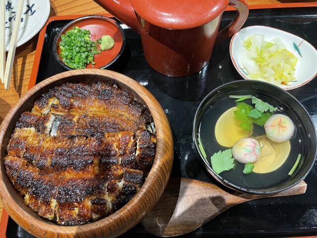 名古屋に来たのでひつまぶしを!と思って予約しました。予約できない店が多いので、予約できる店で選びました。個室(有料)も用意していただき、ゆったり堪能できました。味もよくボリュームも満点でした。薬味がネギとわさびだけだったので、もう少し他の薬味もあってらもっと嬉しかったかな。サービスの漬け物もあり、蛤のお吸い物もついてて大満足でした。