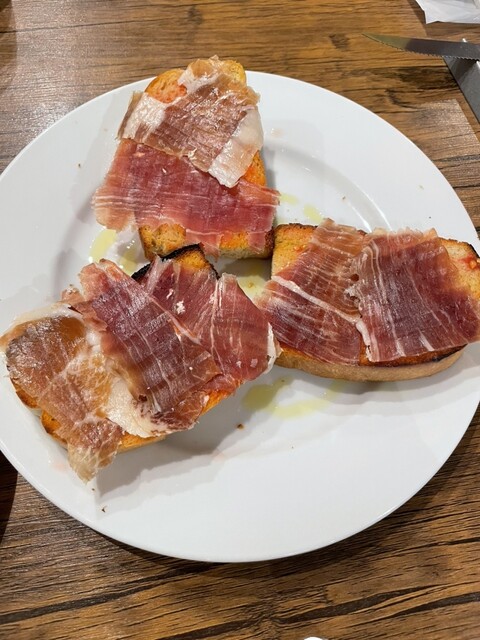 「タパス盛り合わせ」はどれを食べても美味しいし、トーストされたパンの上に分厚い生ハムがのった「生ハムとパンコントマテ」もめちゃくちゃ美味い!