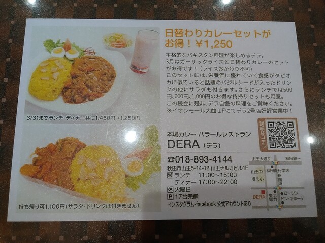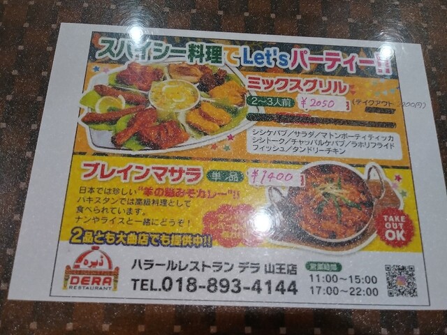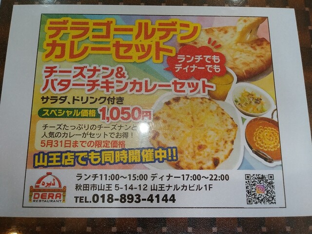 投稿は2度目ですが、夜だけでも2回すでに伺っています。秋田県内の他のインド・ネパール・ベンガルではやってないメニューが豊富なこちらのDERA。