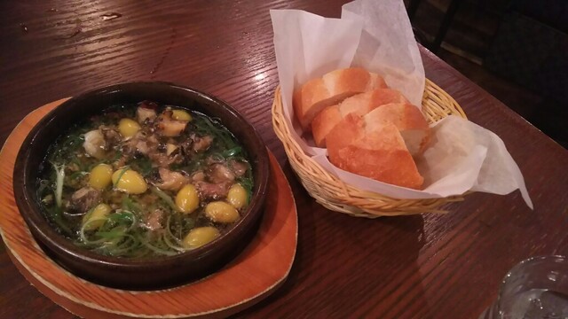 『サザエと銀杏と九条ネギのアヒージョ』、『えぞ鹿ロースト』、『シーフードパエリア』を注文。
